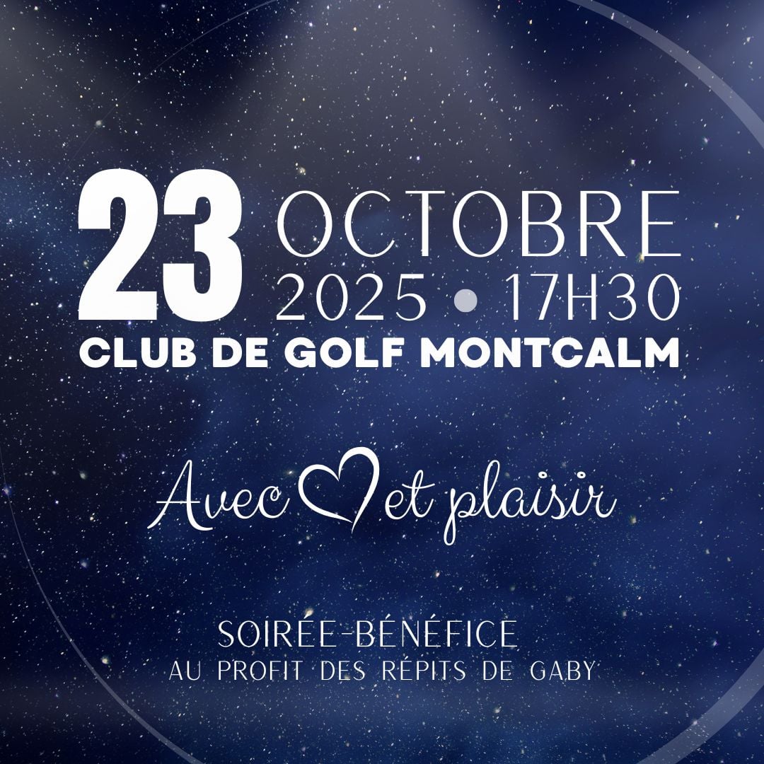Offrir un répit, c’est offrir une bouffée d’air à ceux qui s’essoufflent en silence. Les proches aidants donnent sans compter. Cette soirée, c’est pour eux. Pour leur redonner un peu de ce qu’ils donnent chaque jour. Joignez-vous à nous pour une soirée mémorable, musique et solidarité s’unissent pour faire une vraie différence. Jeudi 23 octobre 2025 Dès 17 h 30 Club de golf Montcalm, St-Liguori Ce qui vous attend : -Souper gastronomique -Musique, animation -Encan et encan silencieux -Témoignages -Concours de golf intérieur (osez le trou d’un coup !) Votre présence n’est pas seulement un billet pour une soirée. C’est un geste de cœur, un appui essentiel à une cause bien réelle. Achetez vos billets ou réservez une table : https://www.zeffy.com/.../avec-coeur-et-plaisir-billets... Vous ne pouvez pas être des nôtres, mais souhaitez être partenaire ?https://www.zeffy.com/.../avec-coeur-et-plaisir-entente... Parce que derrière chaque famille aidée, il y a des gens comme vous.